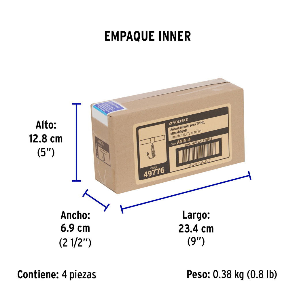 Antena interior para TV HD, ultra delgada, 4 dB, VOLTECK