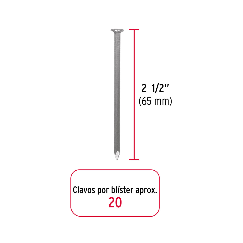 Blíster con 20 clavos estándar 2-1/2" sin cabeza, FIERO