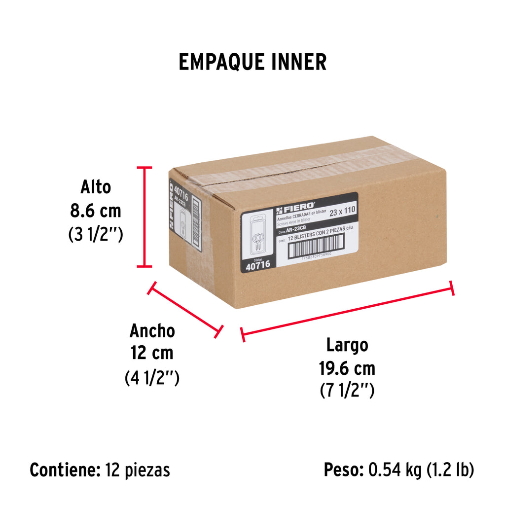 Blíster con 2 armellas cerradas de 22 x 100, Fiero