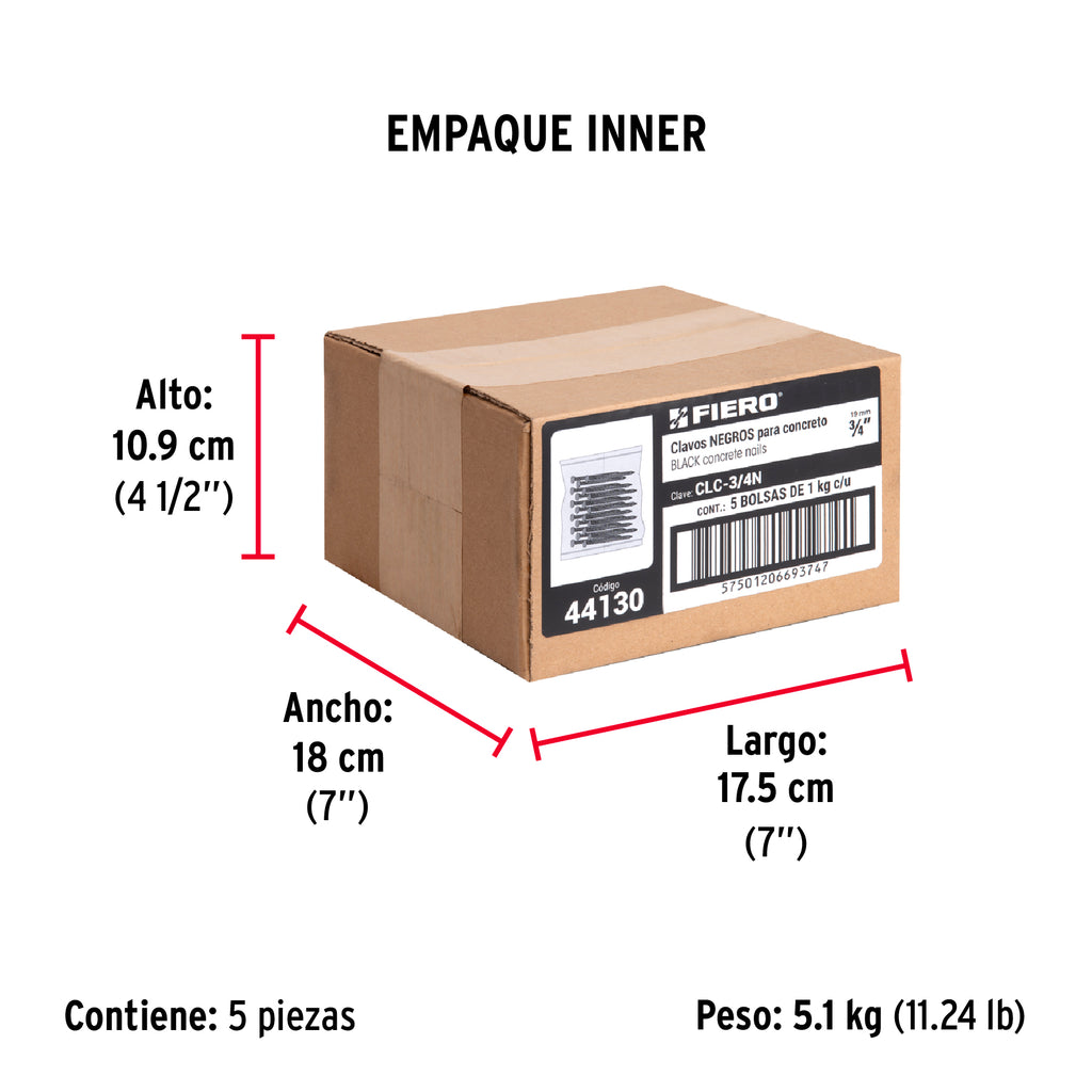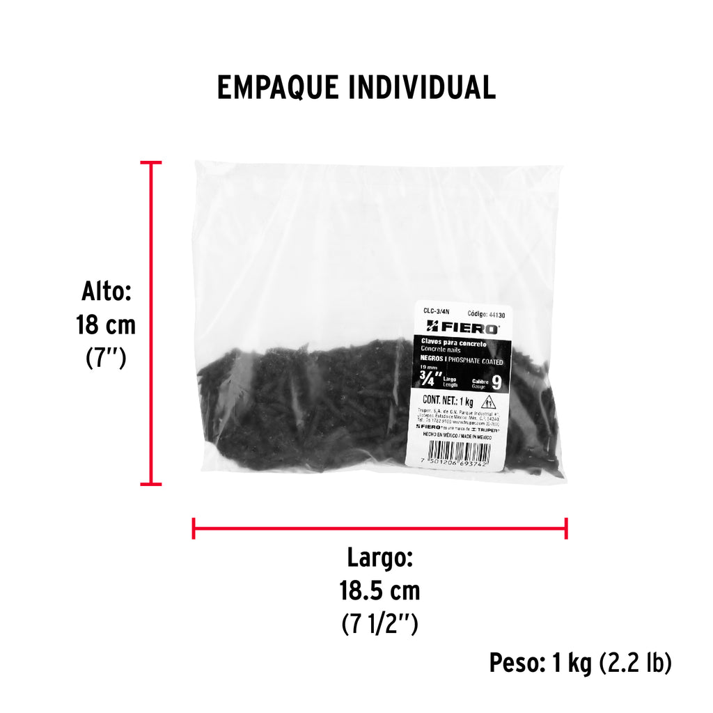 Clavos para concreto negros 3/4", FIERO por Pieza