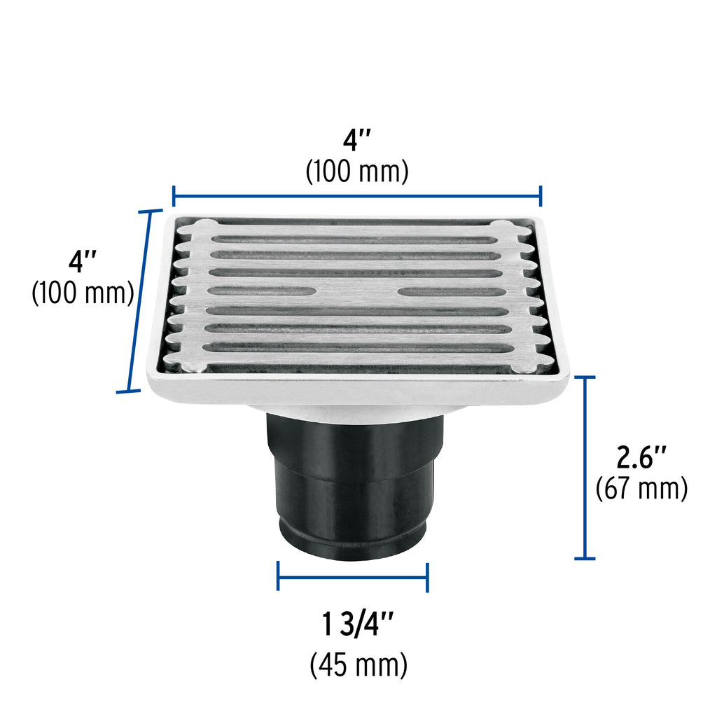 Resumidero cuadrado 4" x 4", acero inoxidable, AQUA