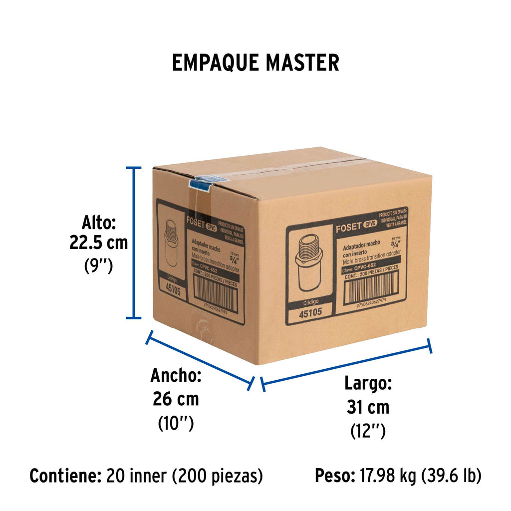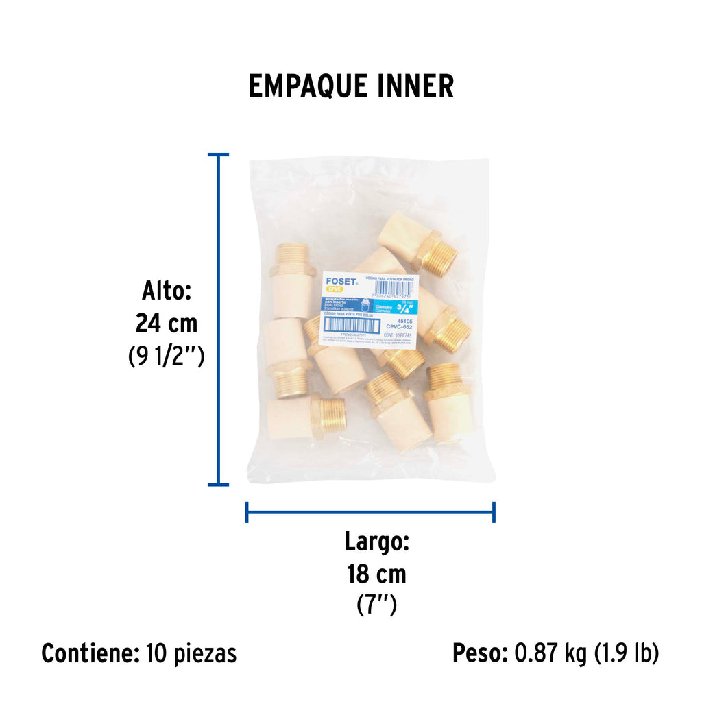 Adaptador macho de CPVC 3/4" con inserto de latón, FOSET