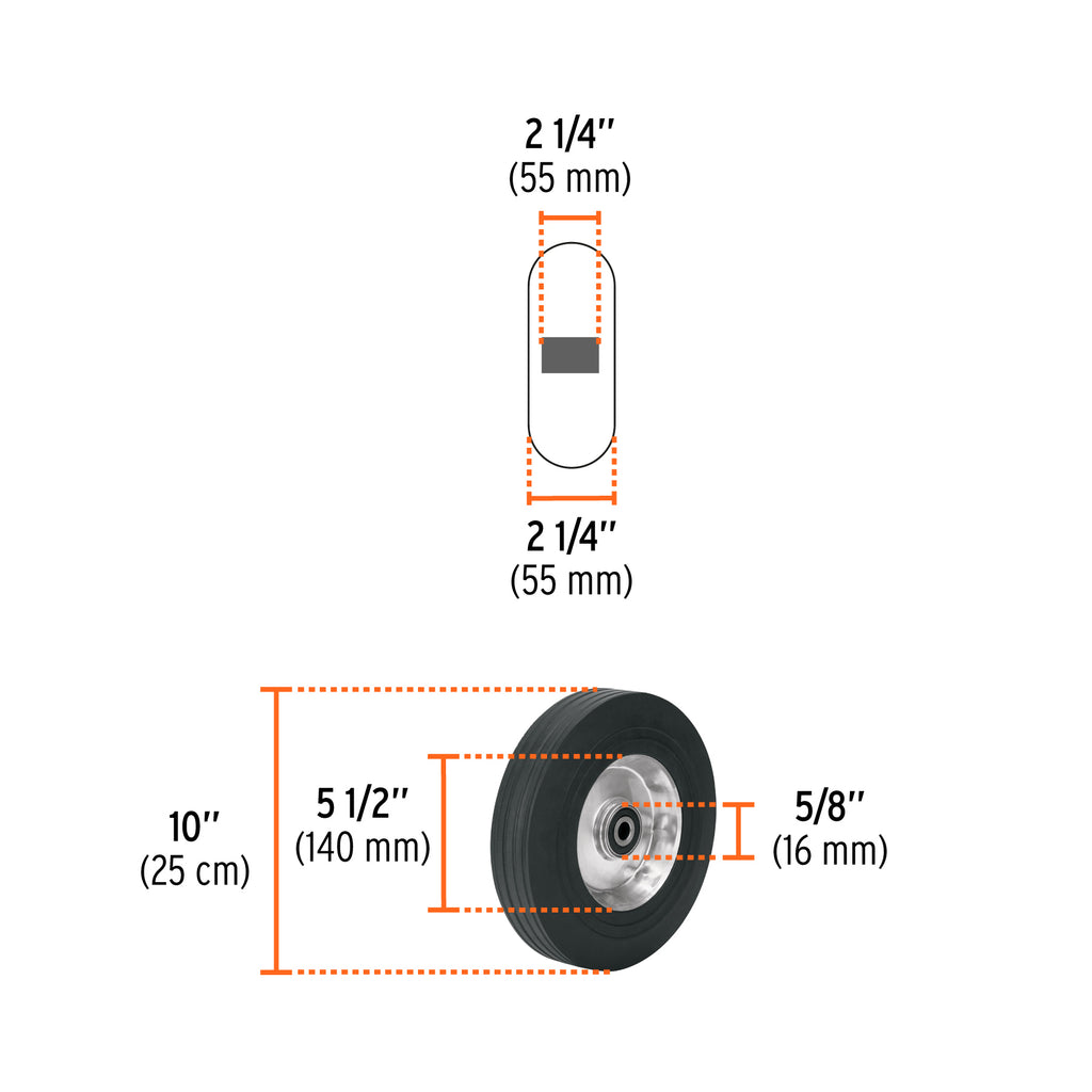 - Ruedas imponchables de poliuretano con rin de acero10", gran resistencia al desgaste con suave rodamiento