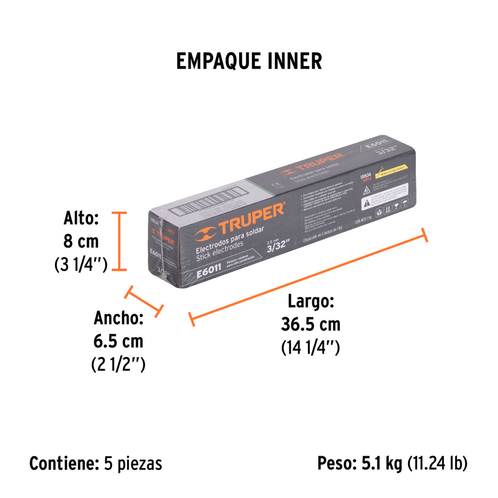 Bolsa con 1 kg de electrodos 6011 de 3/32", Truper