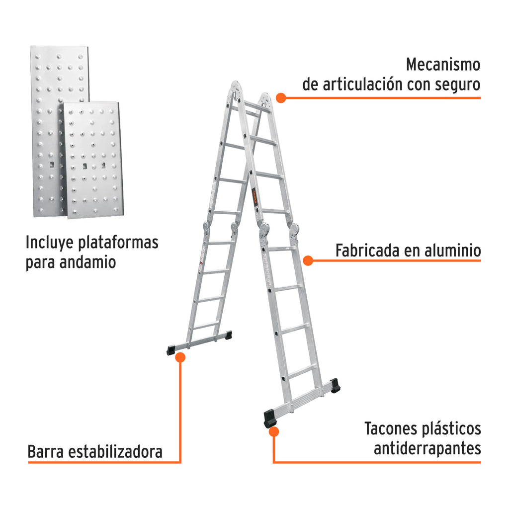 Escalera multiposición 16 peldaños, Tipo I, Truper