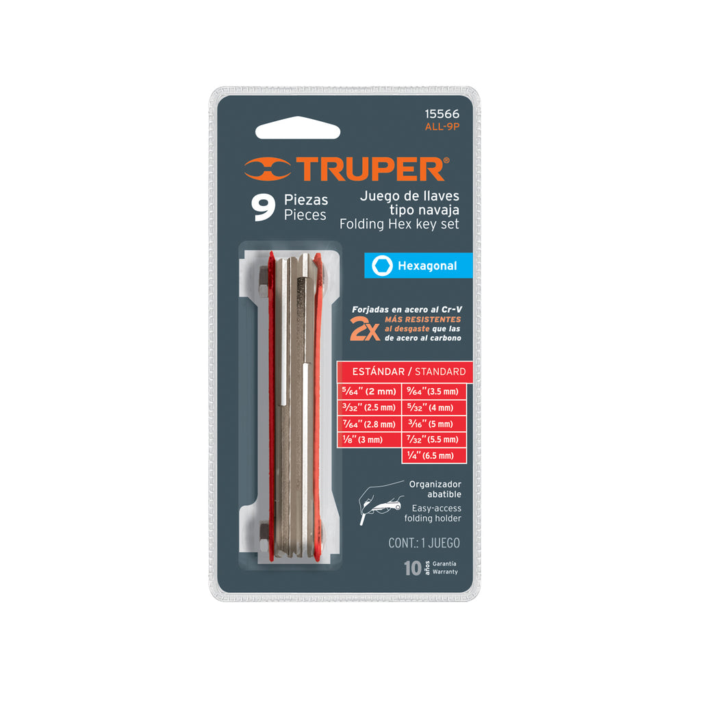 Juego de 9 llaves allen std tipo navaja, cuerpo de lámina Truper