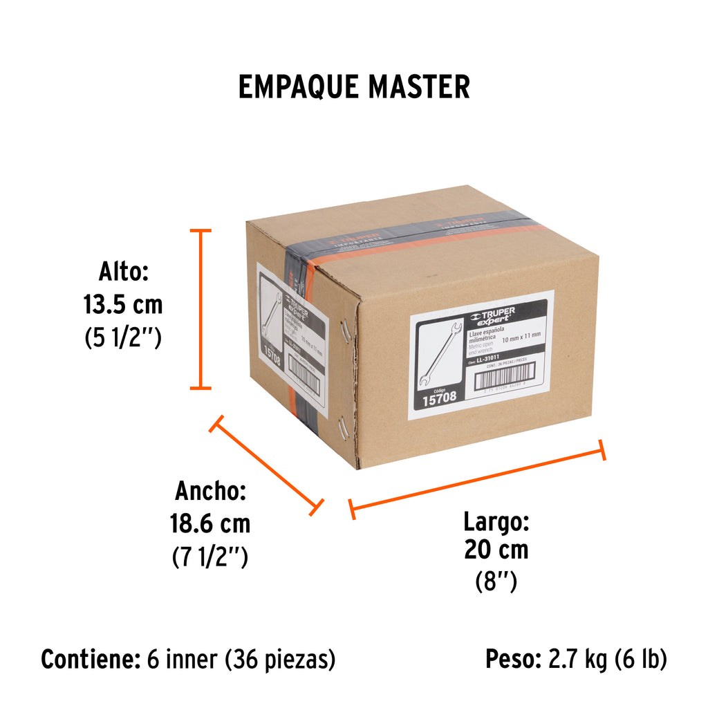 Llave española 10 x 11 x 162 mm de largo, Truper Expert