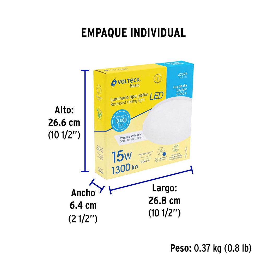 Luminario LED plafón decorativo 15W 6500K, liso, BASIC