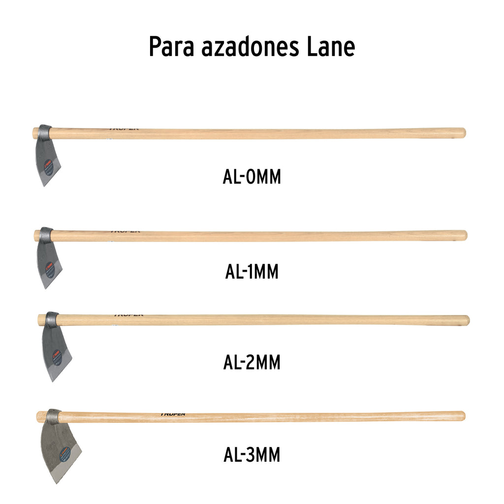 - Para azadón modelo Lane y Oreja martillo marca Truper® (AL-0M, AL-1M, AL-2M, AL-3M, AL-0MM, AL-1MM, AL-2MM, AL-3MM, AL-0S, AL-1S, AL-2S, AL-3S, AL-0, AL-1, AL-2, AL-3, AOM-1M, AOM-2M, AOM-3M, AOM-1, AOM-2, AOM-3)