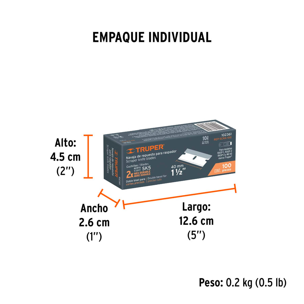 Caja con 100 cuchillas de repuesto para RASP-3,2,1 y NC-10 Truper