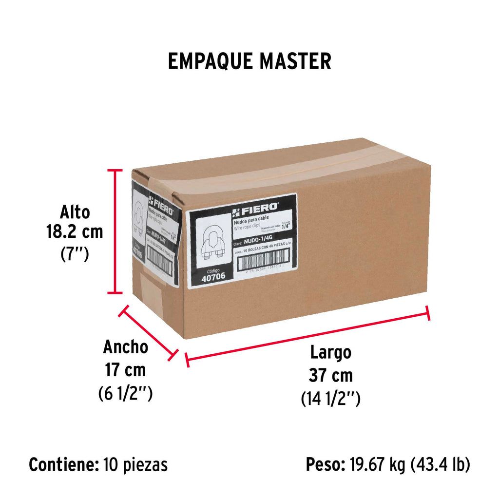 Bolsa con 40 nudos (perros) de hierro para cable de 1/4", FIERO