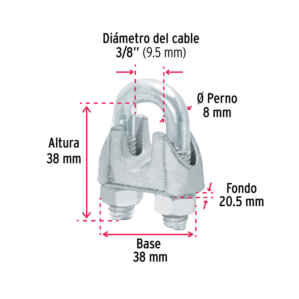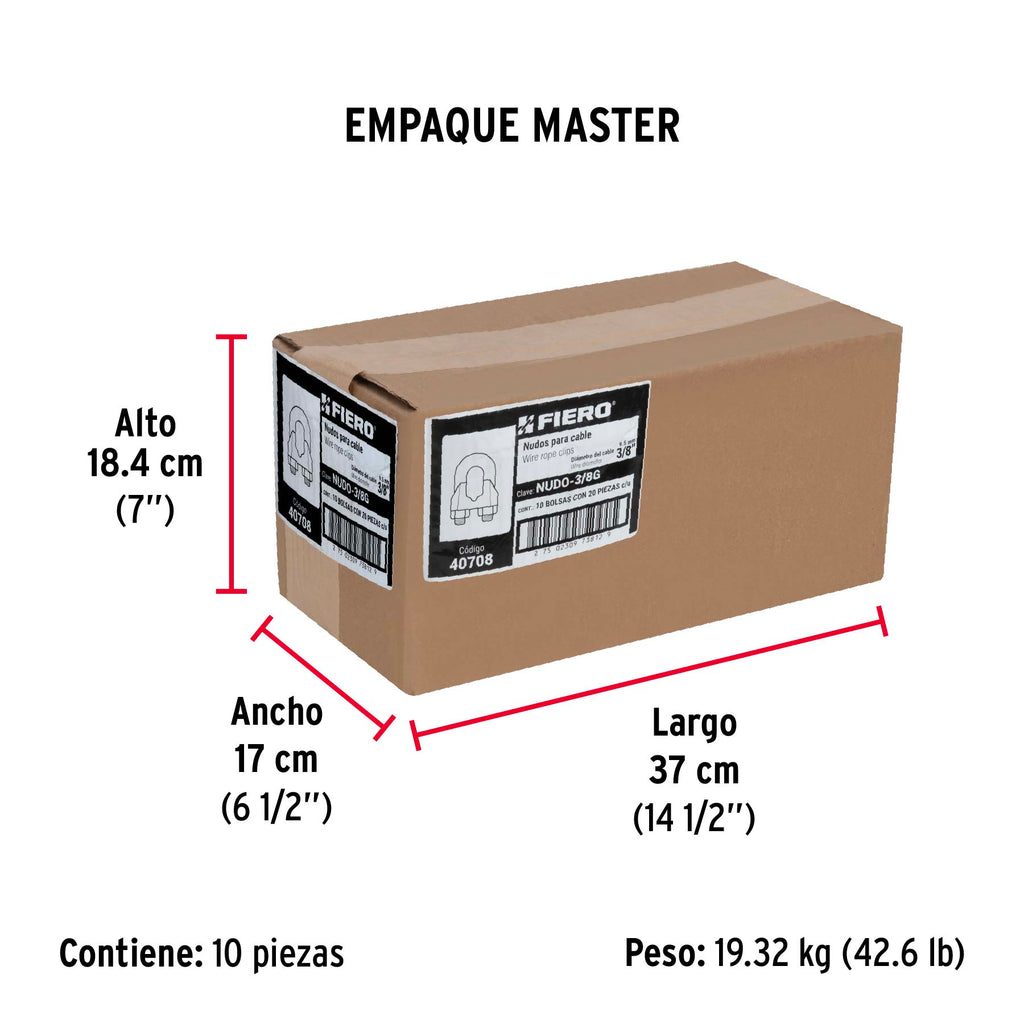 Bolsa con 20 nudos (perros) de hierro para cable de 3/8", FIERO