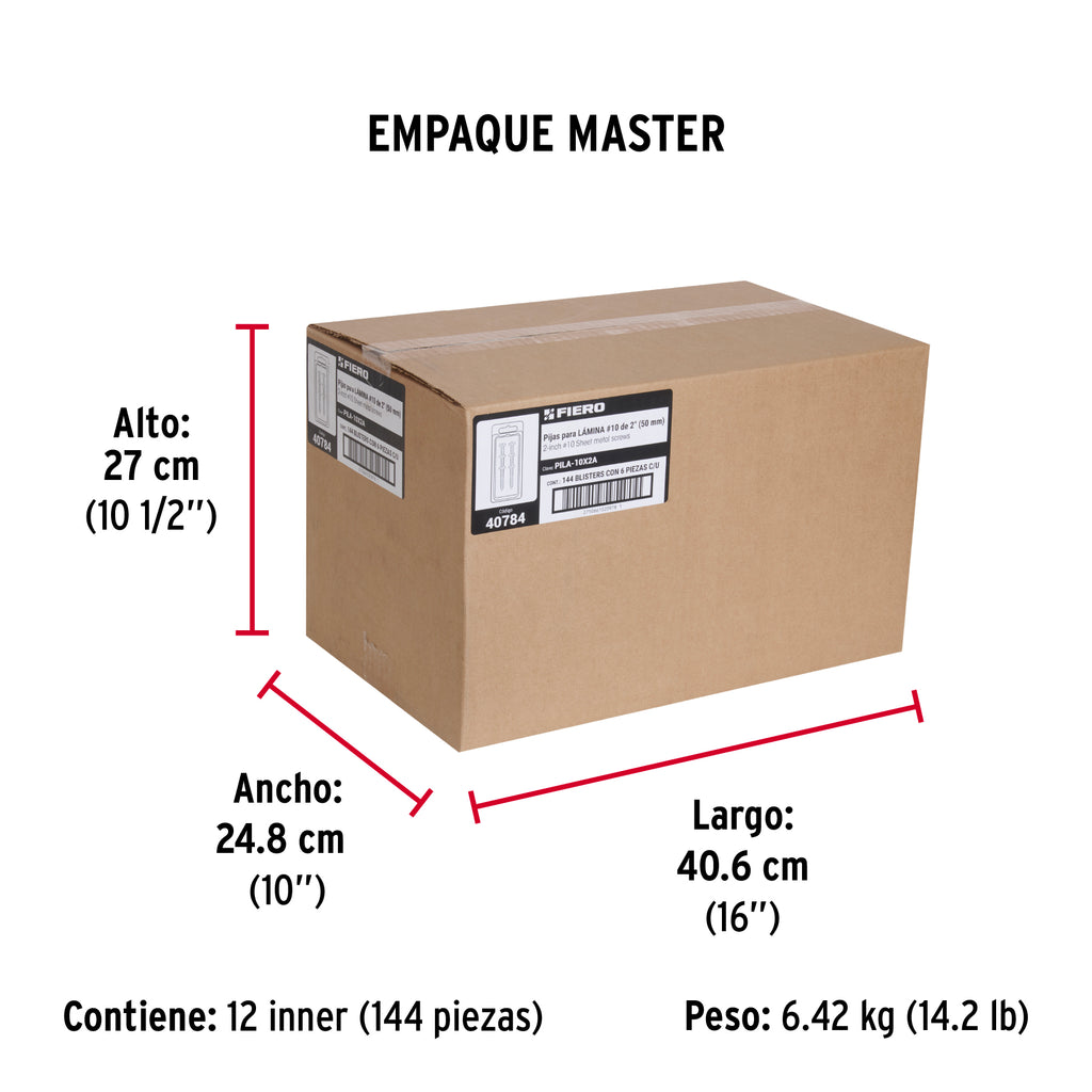 Blíster con 6 pijas para lámina, #10 x 2", FIERO