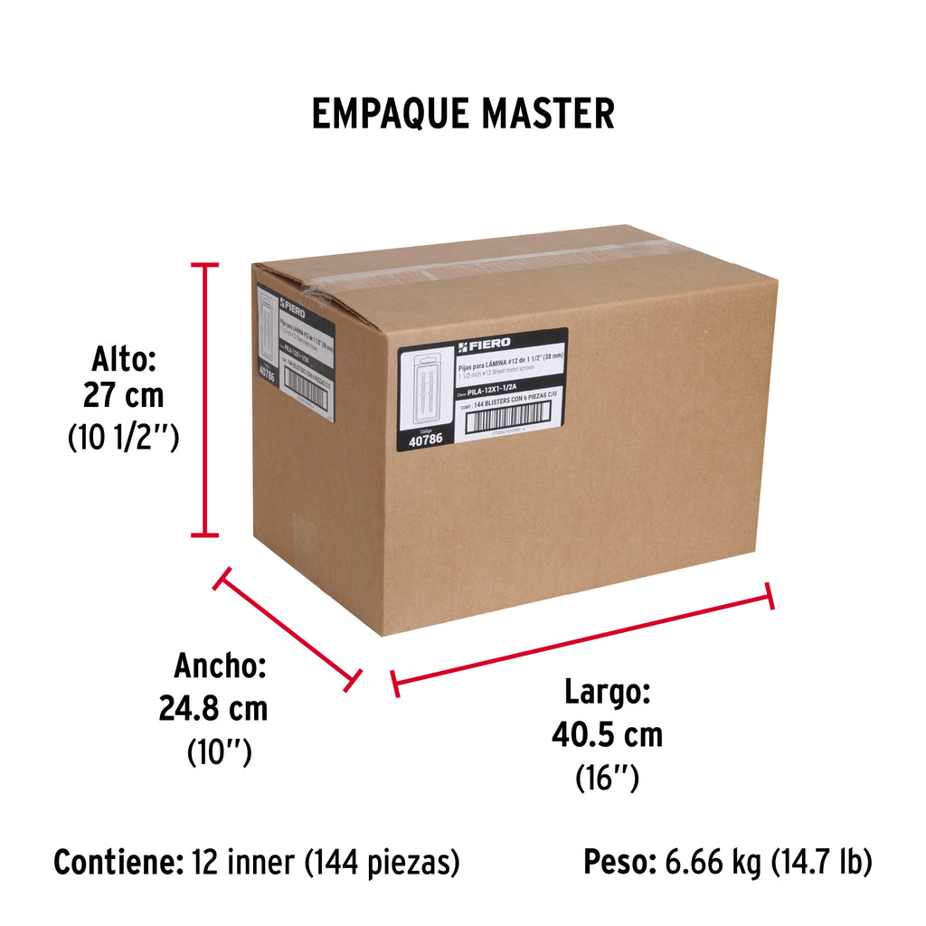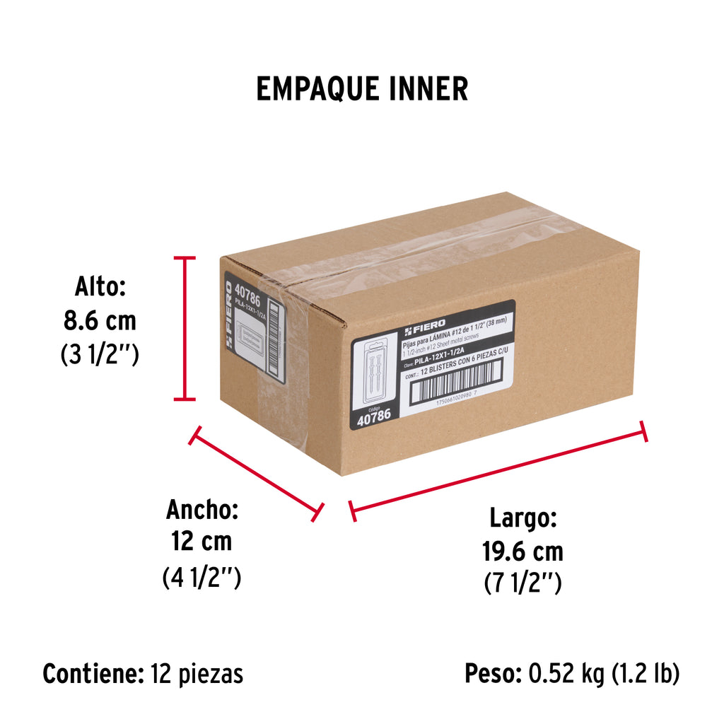 Blíster con 6 pijas para lámina, #12 x 1-1/2", FIERO