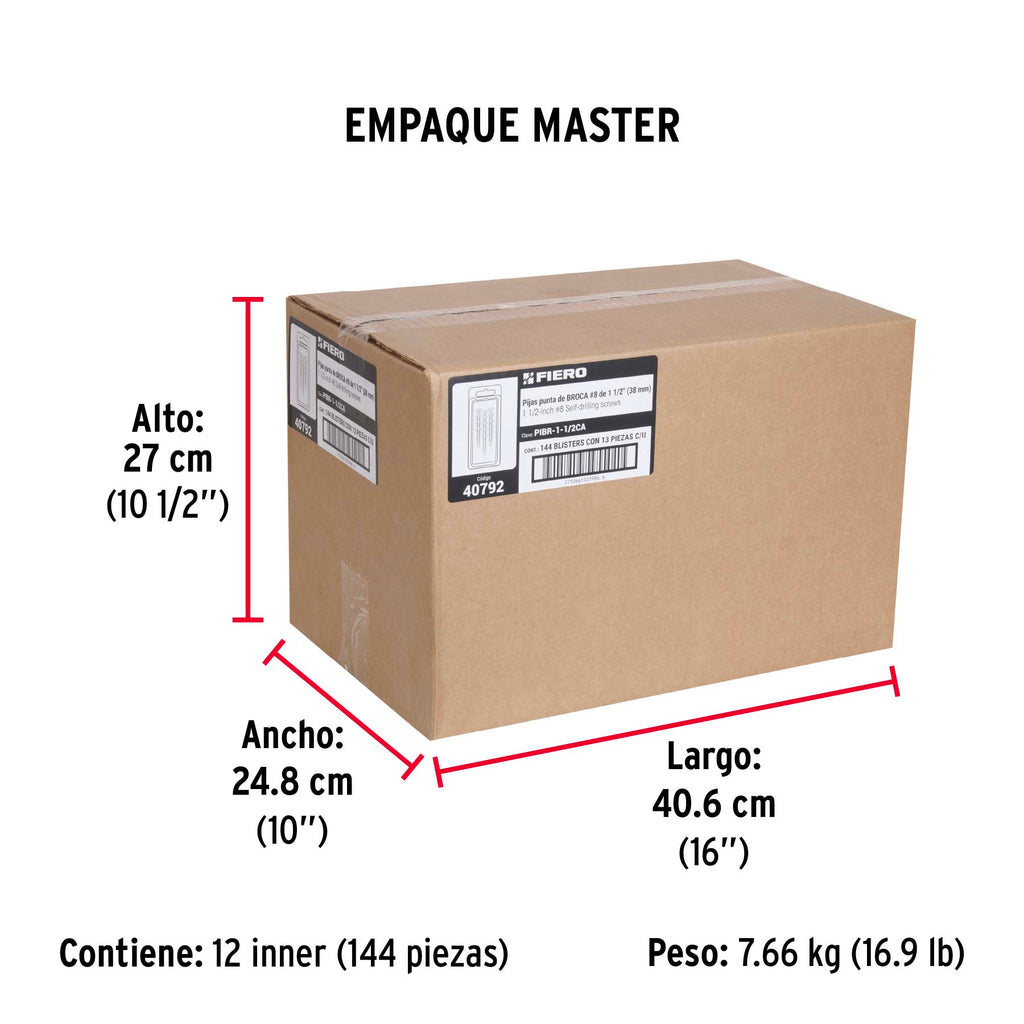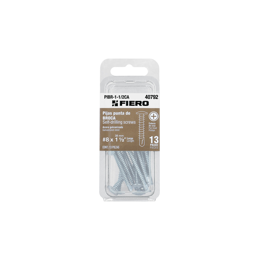 Blíster con 13 pijas cabeza cruz, punta broca 1-1/2", FIERO