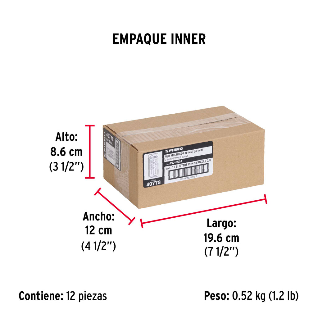 Blíster con 13 pijas #6 x 2" multiusos, FIERO
