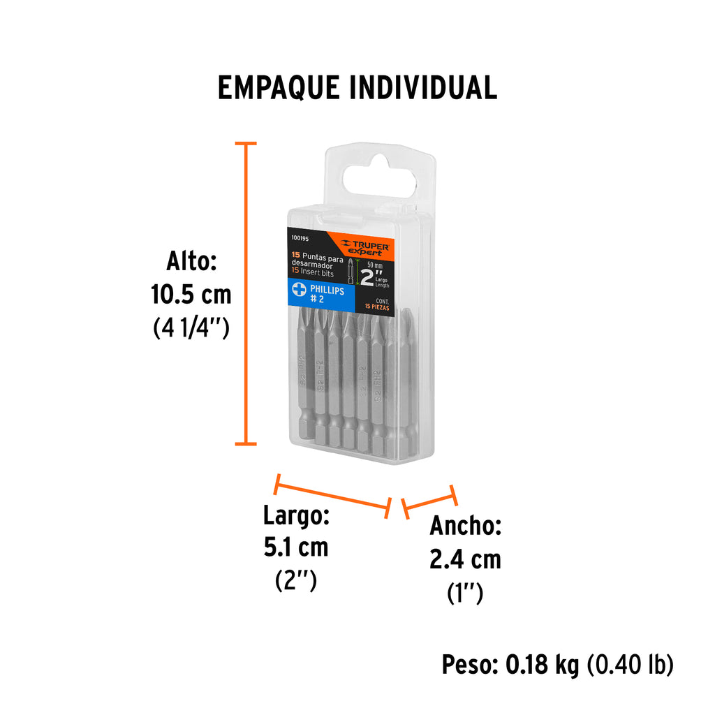Puntas de cruz PH2 largo 2", Truper Expert por Pieza