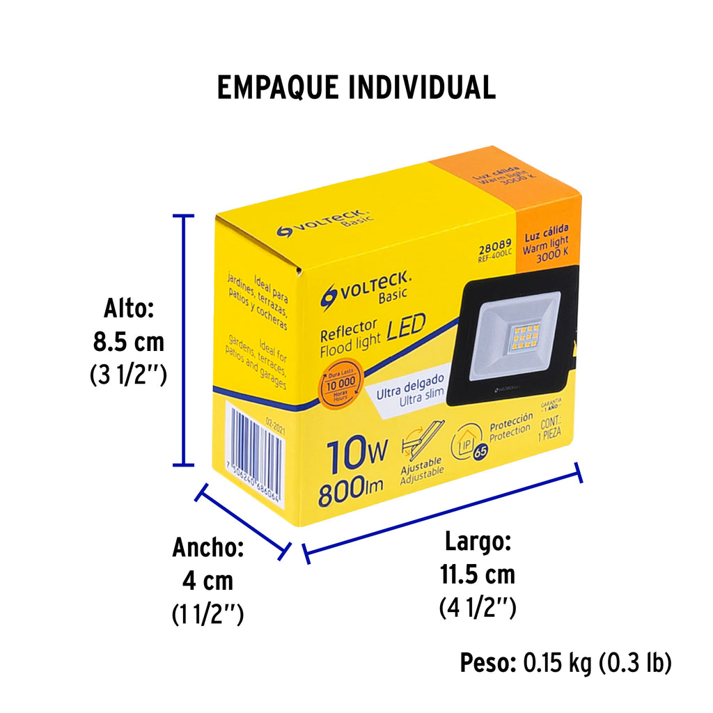 Reflector LED para exteriores 10W 3000K, VOLTECK BASIC