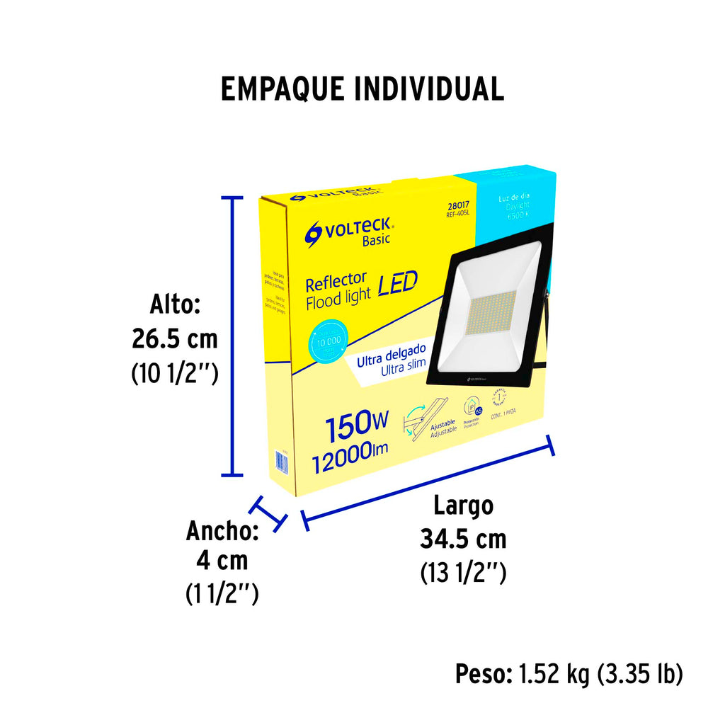 Reflector ultra delgado LED 150 W luz de día, Volteck Basic
