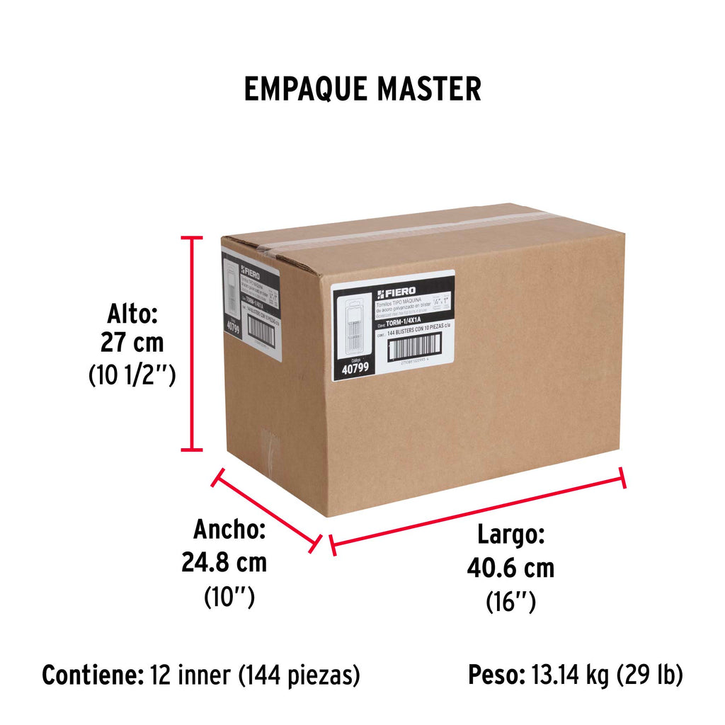 Blíster con 10 tornillos 1/4" x 1" tipo máquina, FIERO