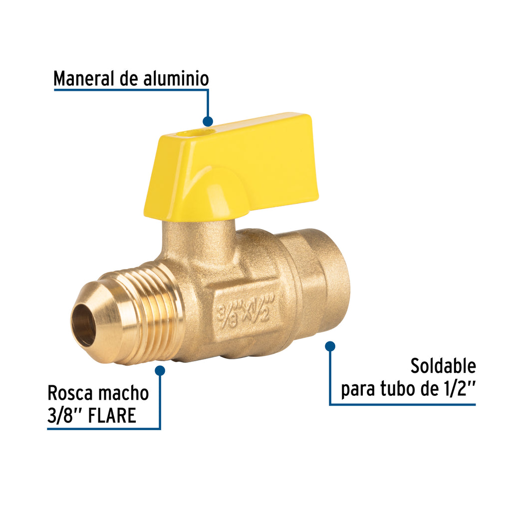 Válvula control para gas, 3/8"x1/2" Flare/soldable FOSET